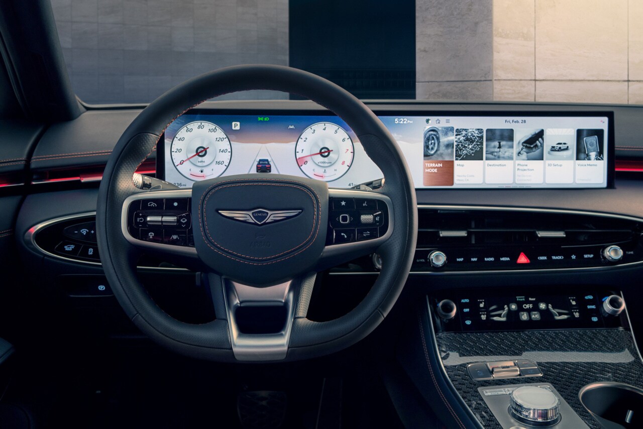 - 3.5T Sport Advanced: The ultimate GV70, featuring Highway Driving Assist II, an electronic limited-slip differential, and 19-inch dark alloy wheels.