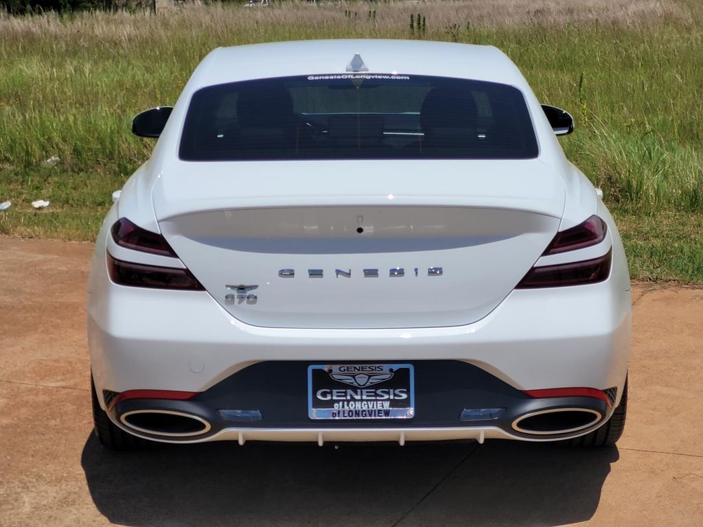 This unit offers Automatic Climate Control for personalized comfort. This 2025 Genesis G70 stays safely in its lane with Lane Keep Assist. This mid-size car comes equipped with Android Auto for seamless smartphone integration on the road. See what's behind you with the back up camera on the vehicle. This model features a hands-free Bluetooth phone system. The installed navigation system will keep you on the right path. It offers Apple CarPlay for seamless connectivity. The leather seats in this unit are a must for buyers looking for comfort, durability, and style. The Genesis G70 employs advanced tech for collision avoidance, enhancing safety on the road. Maintaining a stable interior temperature in this unit is easy with the climate control system. This vehicle shines with clean polished lines coated with an elegant white finish. This mid-size car has a 4 Cyl, 2.5L high output engine. This vehicle is rear wheel drive.